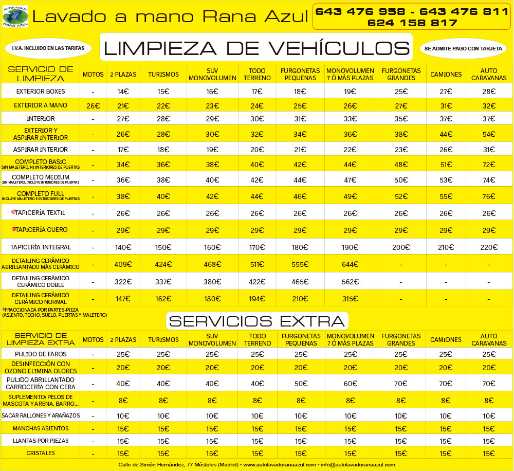 Limpieza a mano de vehículos precios Rana Azul Móstoles